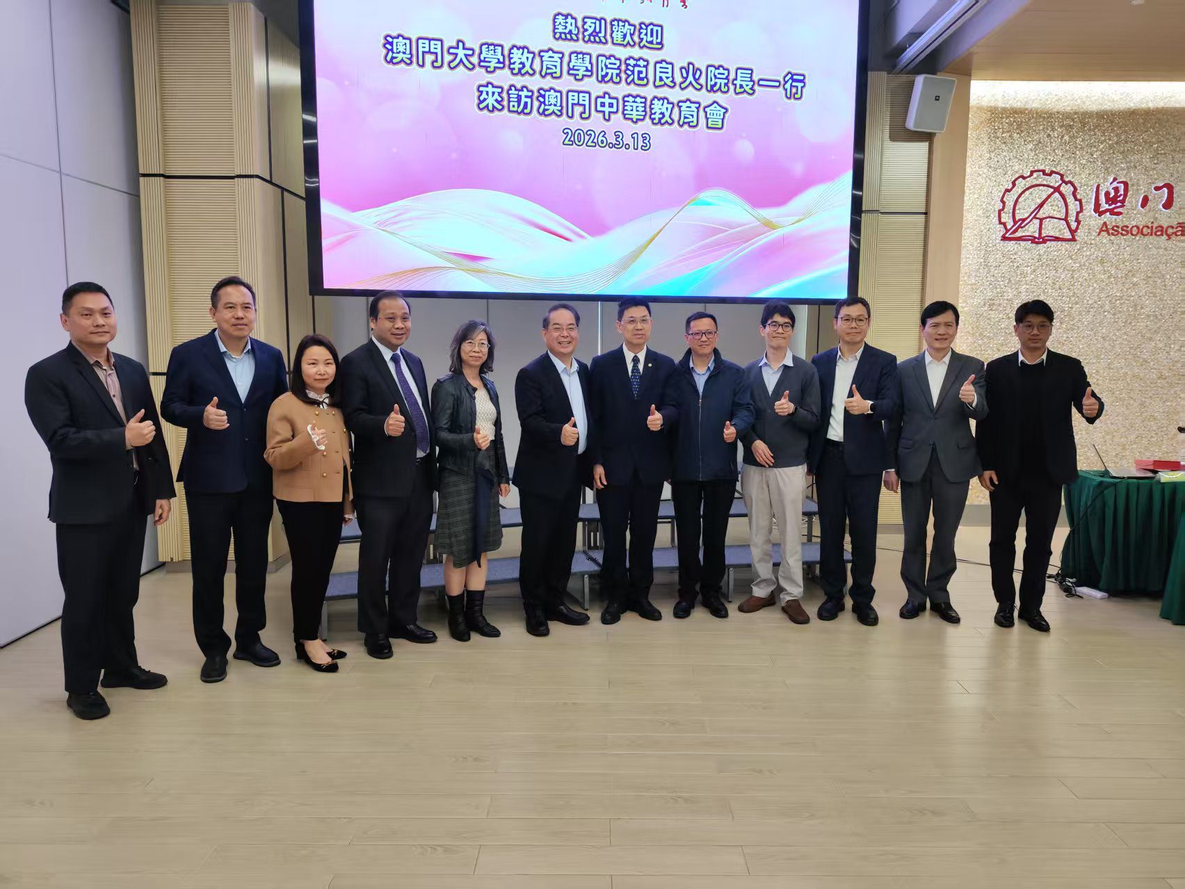 2026年3月13日,澳門大學教育學院代表團拜訪澳門中華教育會,受到理事長鄭杰釗、副理事長兼秘書長岑耀昌、副理事長黃德進、呂吉實、江欽育、陳春新、陳偉民、紀川及多位教育會負責人的熱情接待。