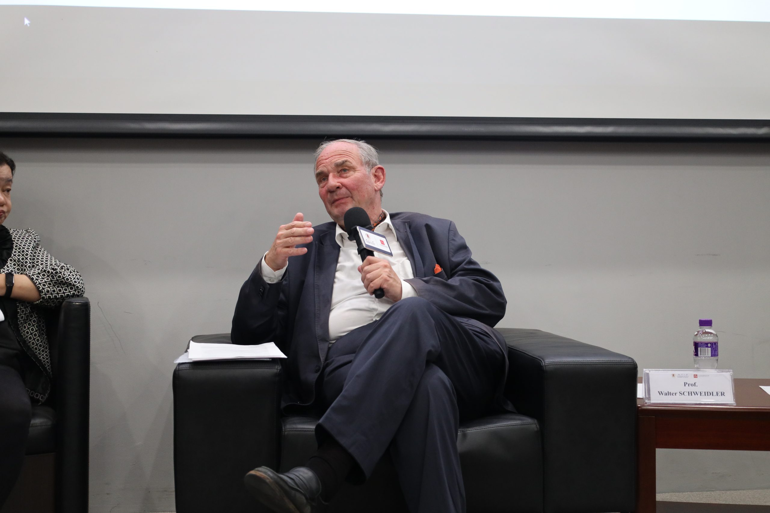 2026年3月16日下午,澳門大學人文社科高等研究院與人文學院哲學與宗教學系聯合舉辦的「澳大哲學名師系列講堂—第十一講」,於崇文樓(E34)G011講堂順利舉行。本次講座特邀德國埃希施泰特—英戈爾施塔特大學哲學講座教授華特·施魏德勒(Walter Schweidler)擔任主講人,以《我們自身中的奴隸——功利主義文化語境下的政治正當性》為主題展開分享。澳門大學人文學院哲學與宗教學系漢斯—格奧爾格·默勒教授(Hans-Georg Moeller)主持講座,澳大人文學院哲學與宗教學系教授兼系主任張穎教授(Ellen Zhang)、澳大法學院全球法律學系副教授兼副院長(研究事務)翟小波教授(Zhai Xiaobo)擔任與談人。