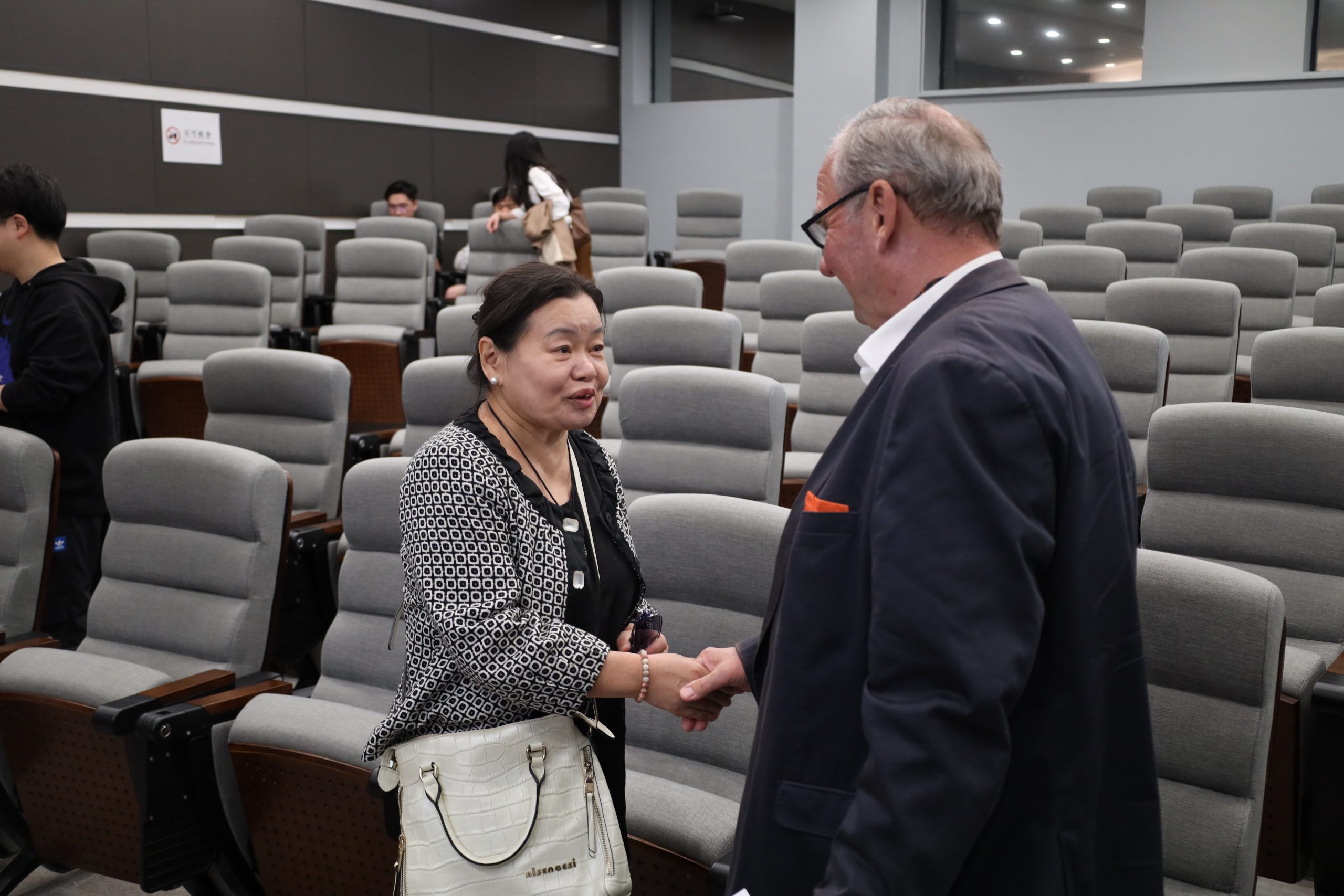 講座現場,華特·施魏德勒教授與兩位與談人及現場師生,圍繞亞里斯多德政治理論的現代價值、功利主義文化的現實影響、現代社會的「自我奴役」等議題展開熱烈互動與深入探討。本次講座吸引眾多澳大學者與學生參與,現場思辨氛圍濃厚,不僅為師生從古典哲學視角審視現代政治與文化困境提供全新思路與多元觀察視角,更進一步推動中西哲學思想的交流與碰撞。