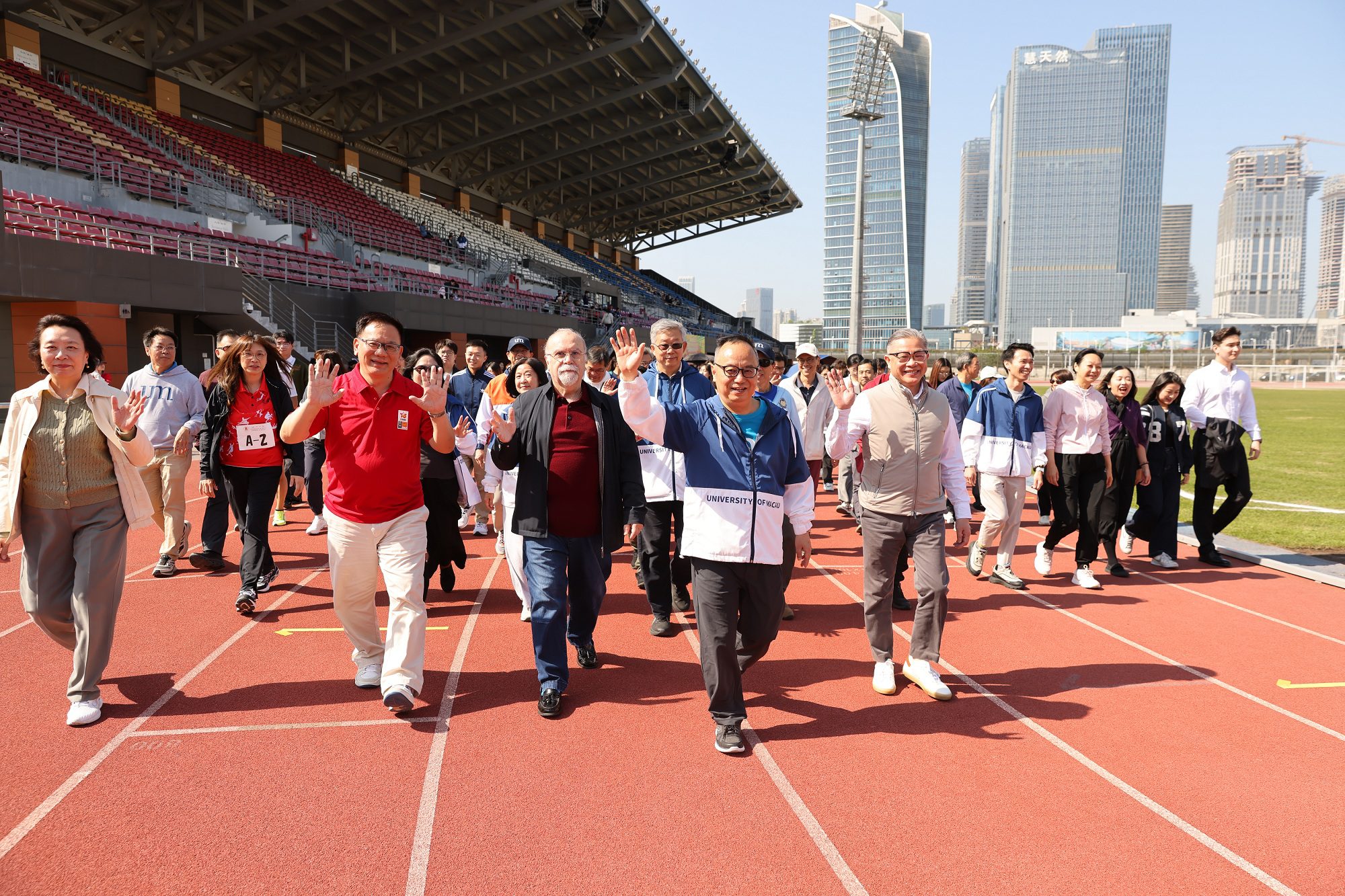 為慶祝澳門大學45周年校慶,澳大舉辦校慶田徑活動,一眾嘉賓、師生、校友、家屬、體育志願者等近800人齊聚一堂,以運動為媒,共賀校慶,現場氣氛熱烈歡騰。