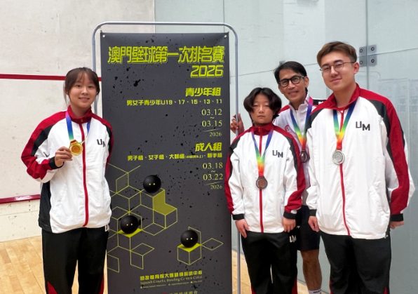 The “Macau Squash 1st Ranking Tournament 2026” (organized by Macau Squash Association) ended successfully on 22 Mar at Squash Court of Bowling Center, Complexo Desportivo Internacional do Cotai. UM Squash Team captured the championship and 1st runner-up for Novice’s Division and 2nd runner-up for GU19 Division, the following table shows the UM Squash Team medalist for the Championship,