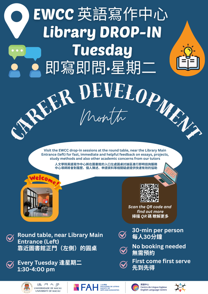 【FAH-ELC】EWCC “Library DROP-IN Tuesday” : Career Development Month