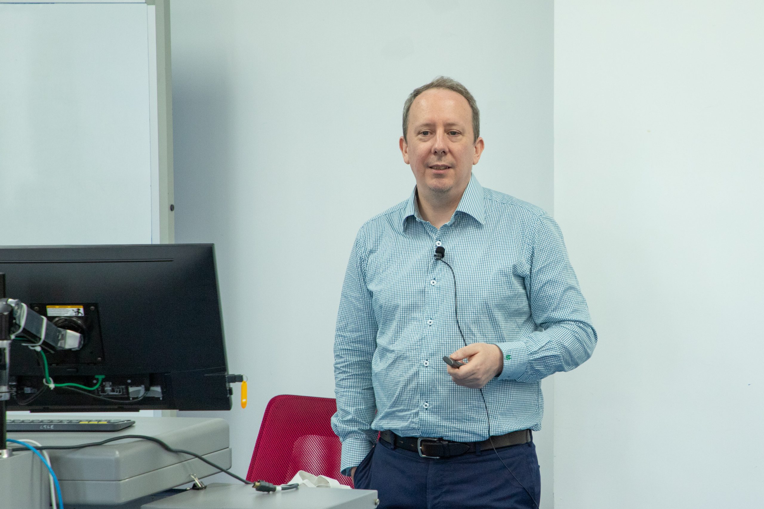 工作坊上,來自香港科技大學的 Sean McMinn 教授探討了在現今 AI 盛行的環境下,如何提升大班教學的學生參與度。