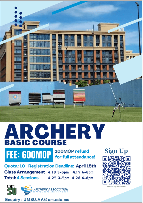 本通告由 澳門大學學生會射箭學會 提供,體育事務部代傳。