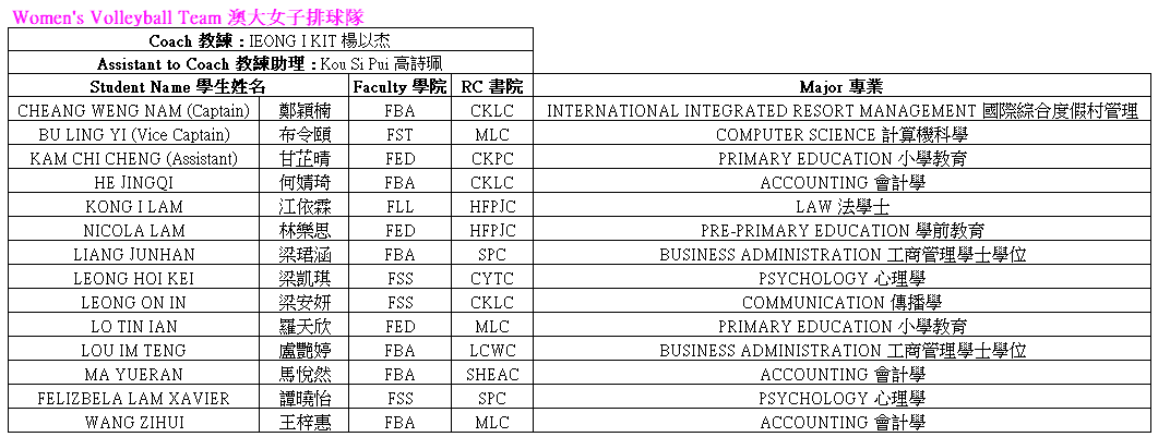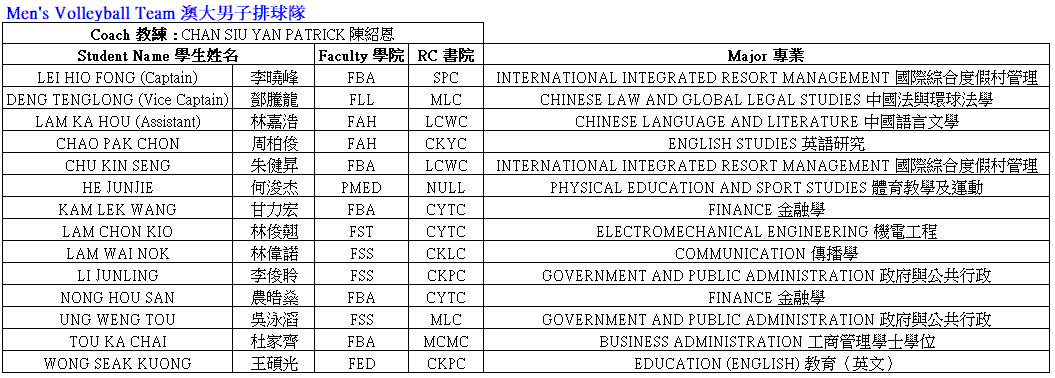 UM will send a total of 28 students from Men’s Volleyball Team and Women’s Volleyball Team to participate in this competition.