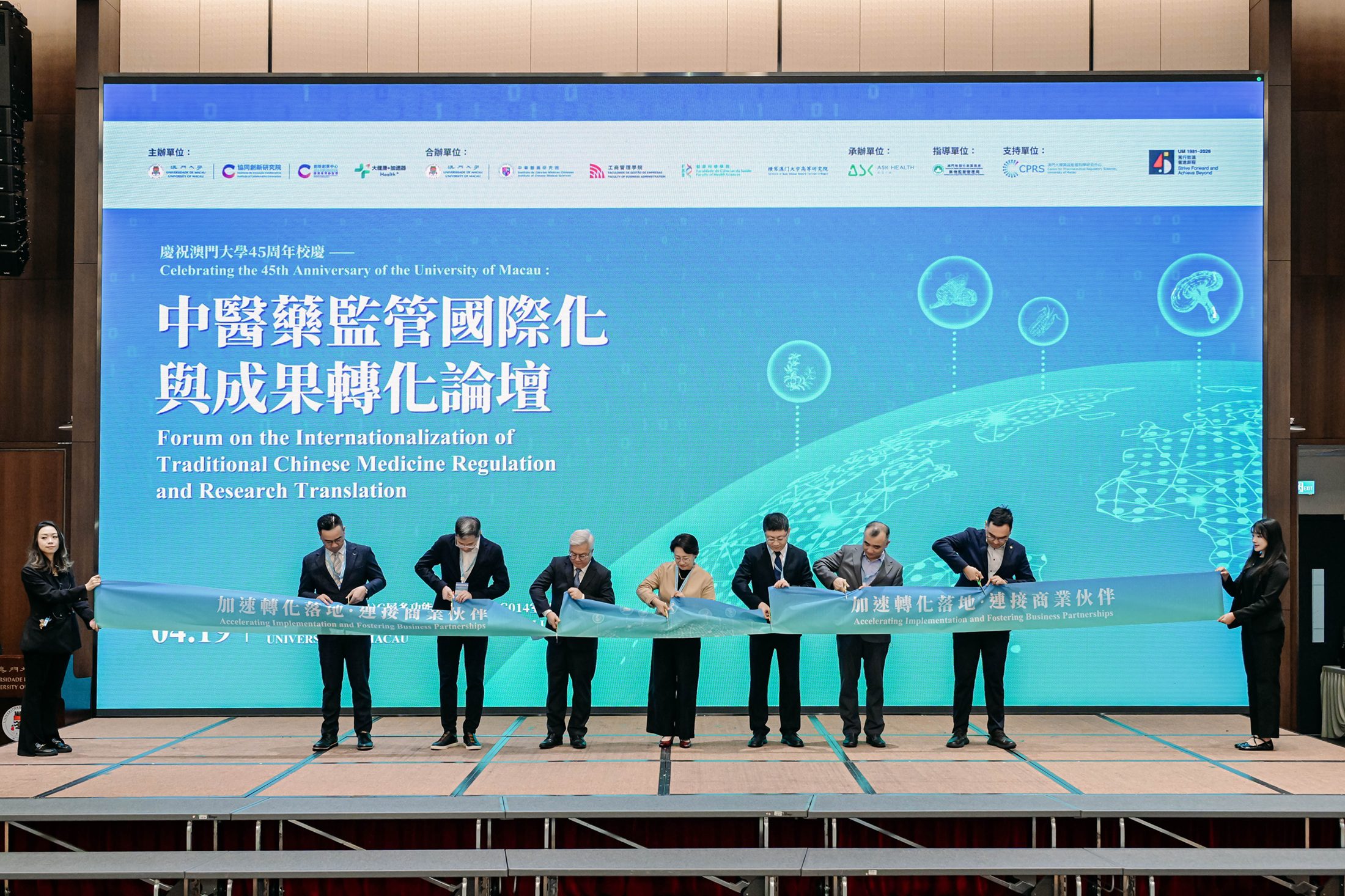 論壇由澳大工商管理學院、健康科學學院、中華醫藥研究院、橫琴澳門大學高等研究院協辦,艾社康(上海)健康諮詢有限公司承辦,澳門藥物監督管理局擔任指導單位,澳大藥品監管科學研究中心支持。