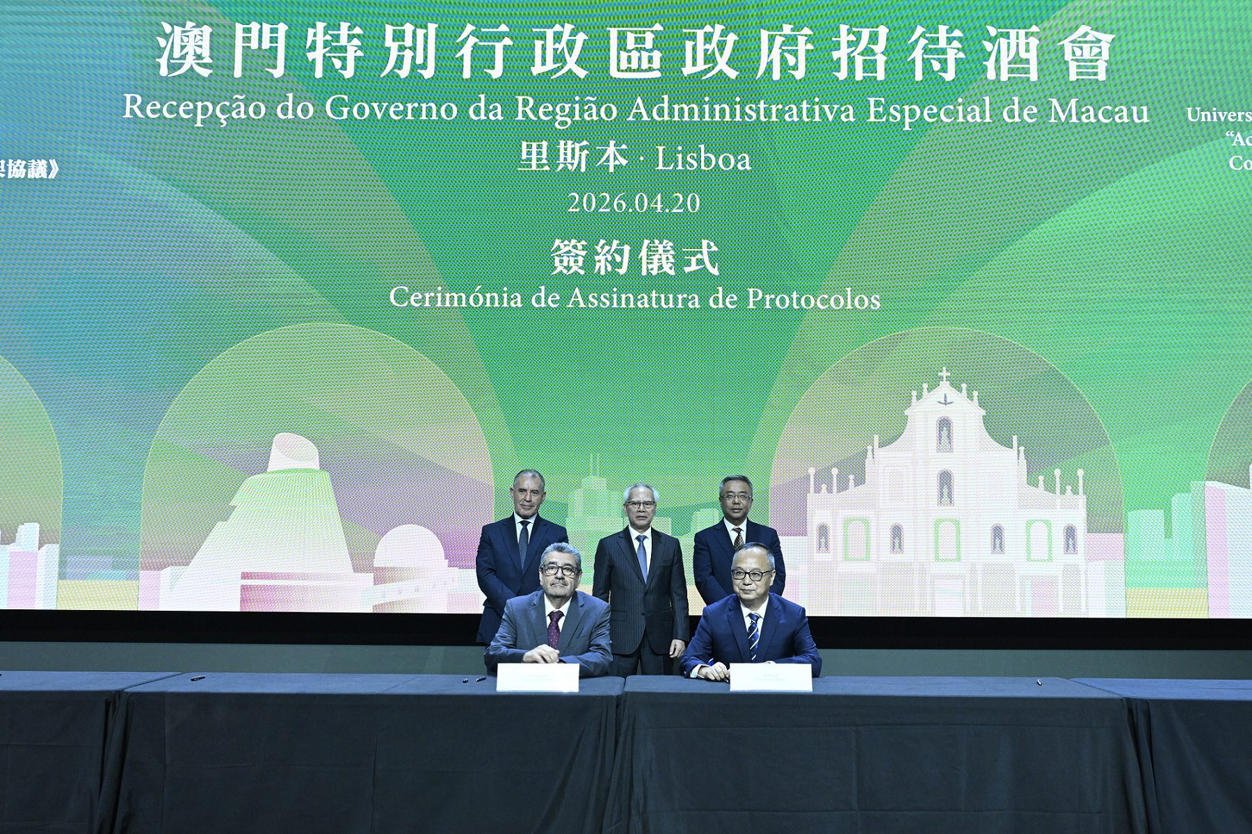 澳門大學校長宋永華與副校長馬許願(Rui Martins)隨澳門特別行政區行政長官岑浩輝等訪問葡萄牙里斯本。在岑浩輝的見證下,澳大與多所葡萄牙高校簽署合作協議並落實多項重要合作,全面深化聯合課程、科研創新及人才培養三大戰略合作,推動國際高等教育發展和合作。