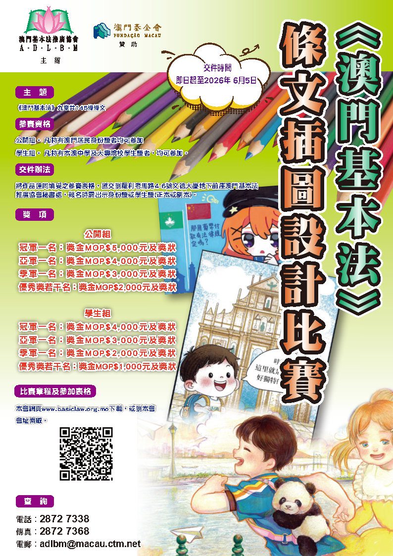 校外活動: 澳門基本法推廣協會: 《澳門基本法》條文插圖設計比賽" (截止收件日期:6月5日)