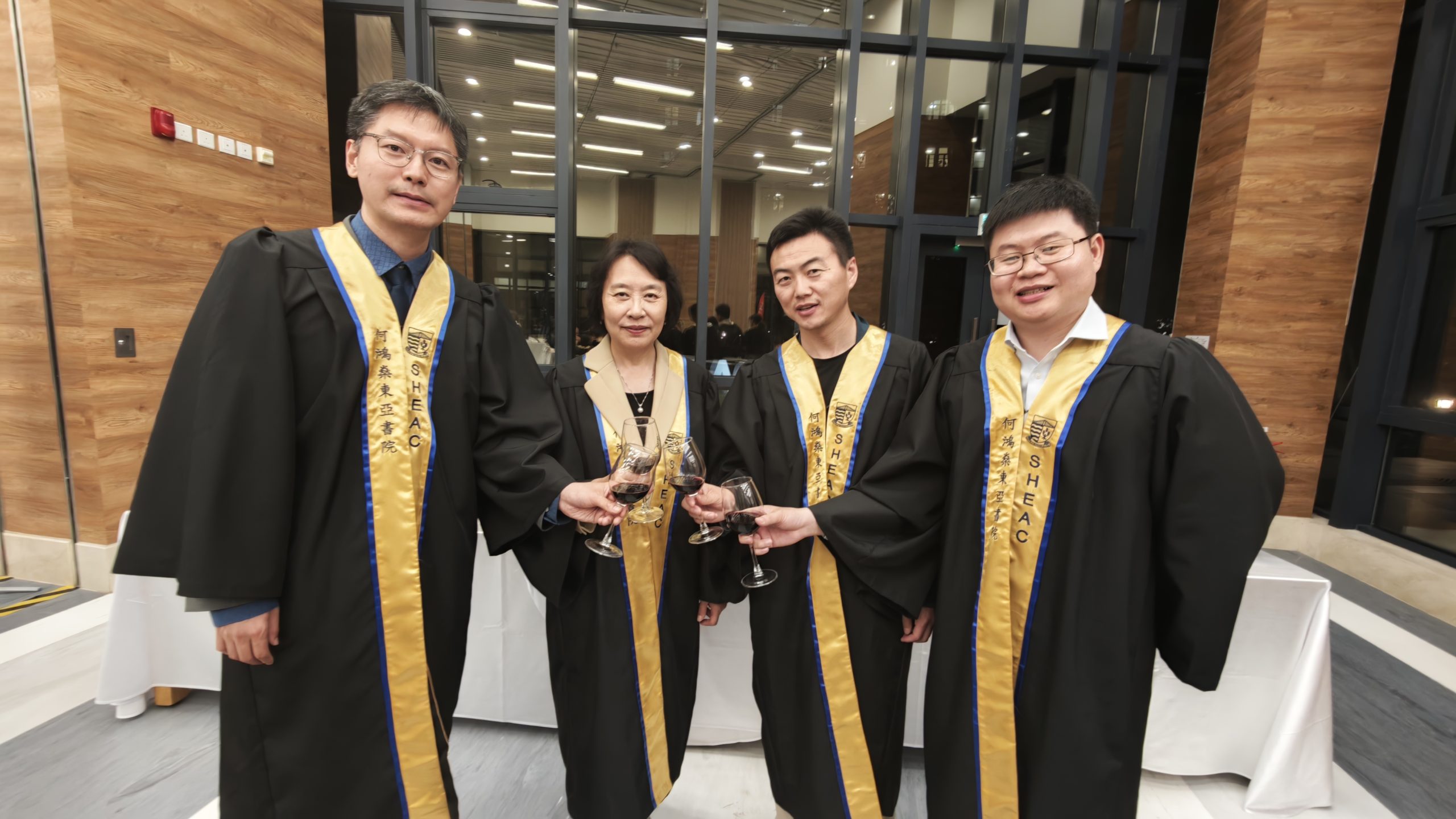 A group photo of Tongji University Qidi College Executive Dean Prof. Yin Xuefeng and Associate Dean Prof. Lu Zheng, with SHEAC Master Prof. Kathy Luo, guests and students at the Valedictory Dinner.