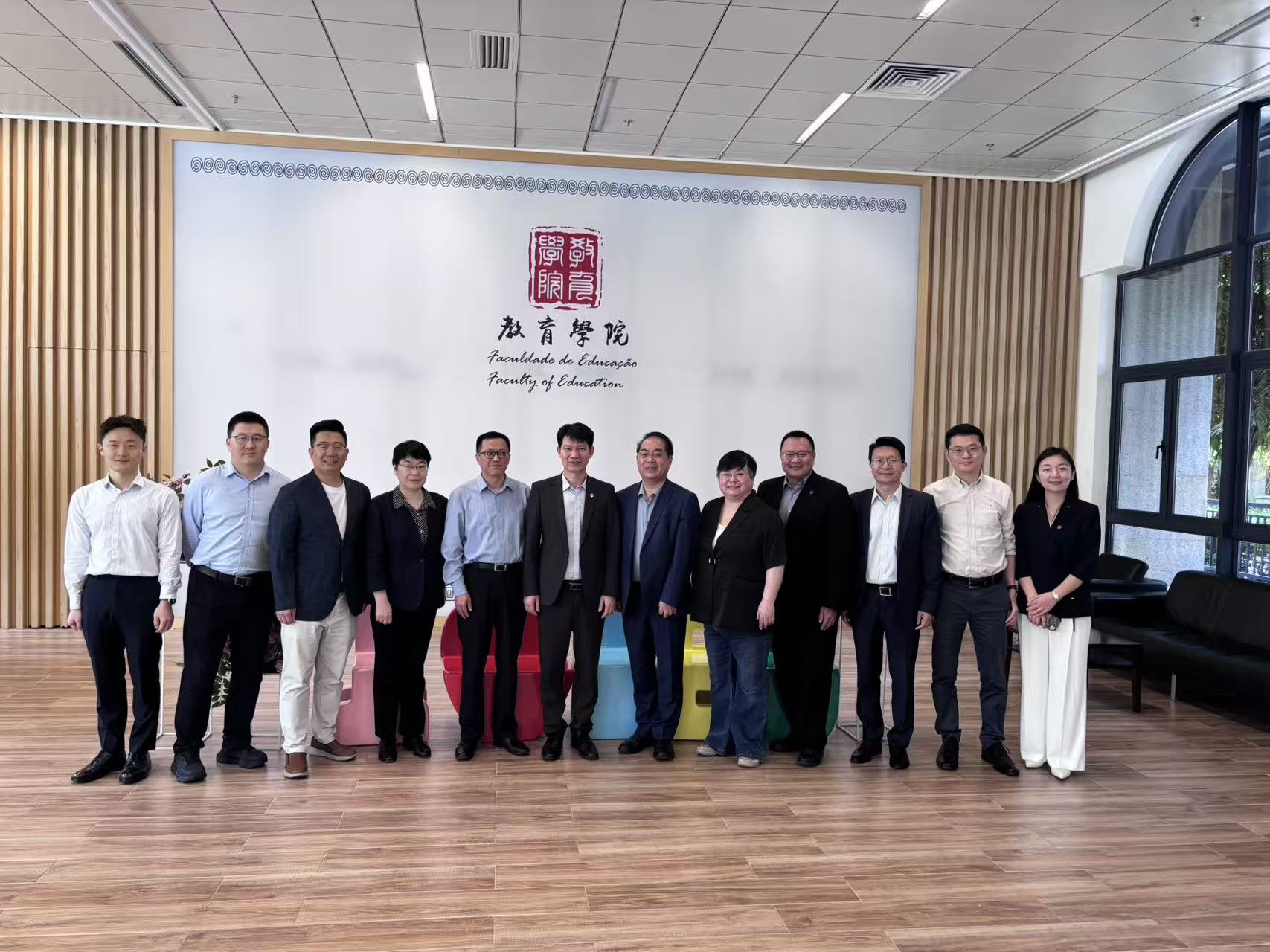 On 22 April 2026, a delegation from East China Normal University (ECNU) visited the Faculty of Education (FED) of the University of Macau. The two parties held deep exchanges on a range of issues of mutual interests. The delegation was led by Prof. Jian WU, Vice President of ECNU, and included senior leaders from Meng Xiancheng College, the School of Mathematical Sciences, the Shanghai Institute of Intelligent Education (SiiE), and the Office for Hong Kong, Macao and Taiwan Affairs. The delegation was warmly received by Prof. Lianghuo FAN, Dean and Director of the Centre for STEM and AI Education of FED; Prof. Dongbo ZHANG, Associate Dean (Teaching and Curriculum Development) and Programme Coordinator of Doctor of Education; Prof. Yang GONG, Programme Coordinator of Bachelor of Education (Chinese); Prof. Xinrong YANG, Programme Coordinator of Bachelor of Education (Mathematics); and Prof. Fu CHEN, Assistant Director of the Centre for STEM and AI Education and Head of the AI Education Lab.