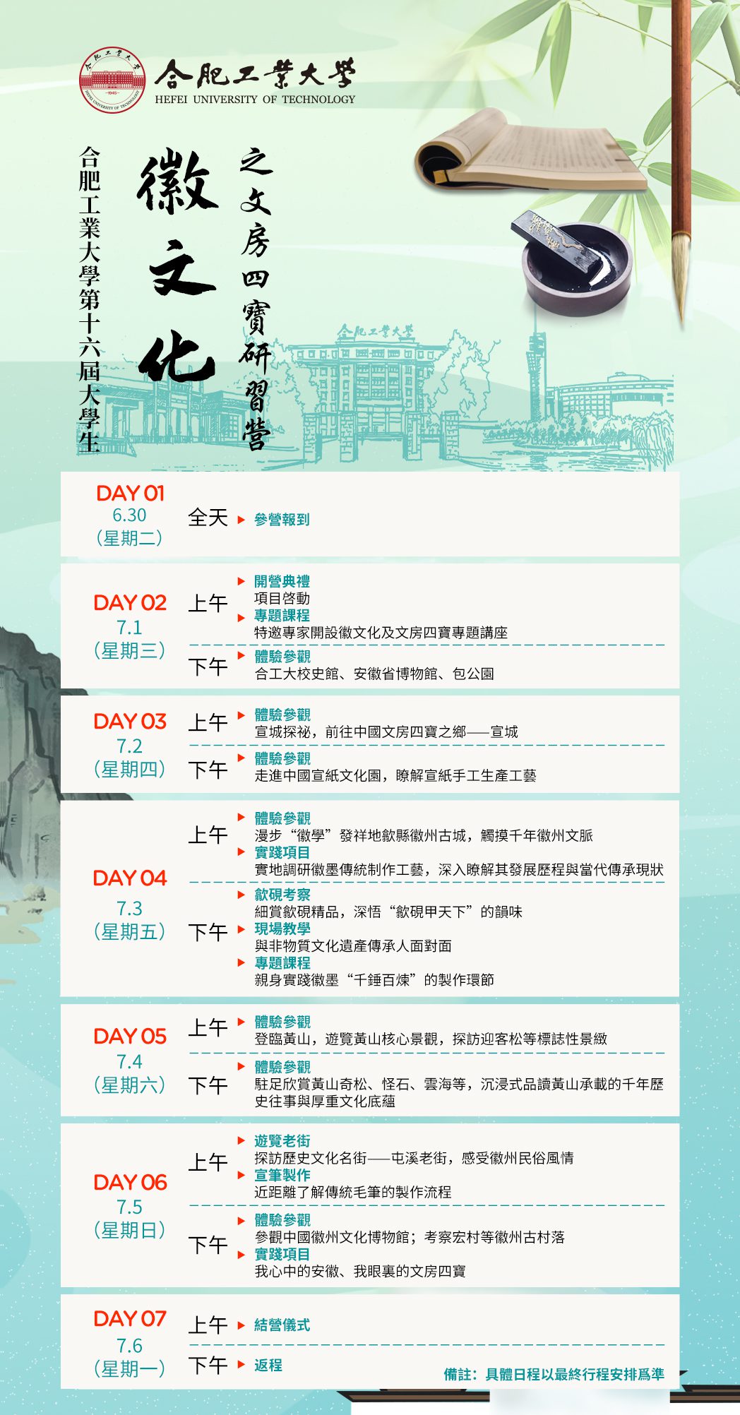 | 項目名稱 | 第十六屆大學生徽文化研習營 |