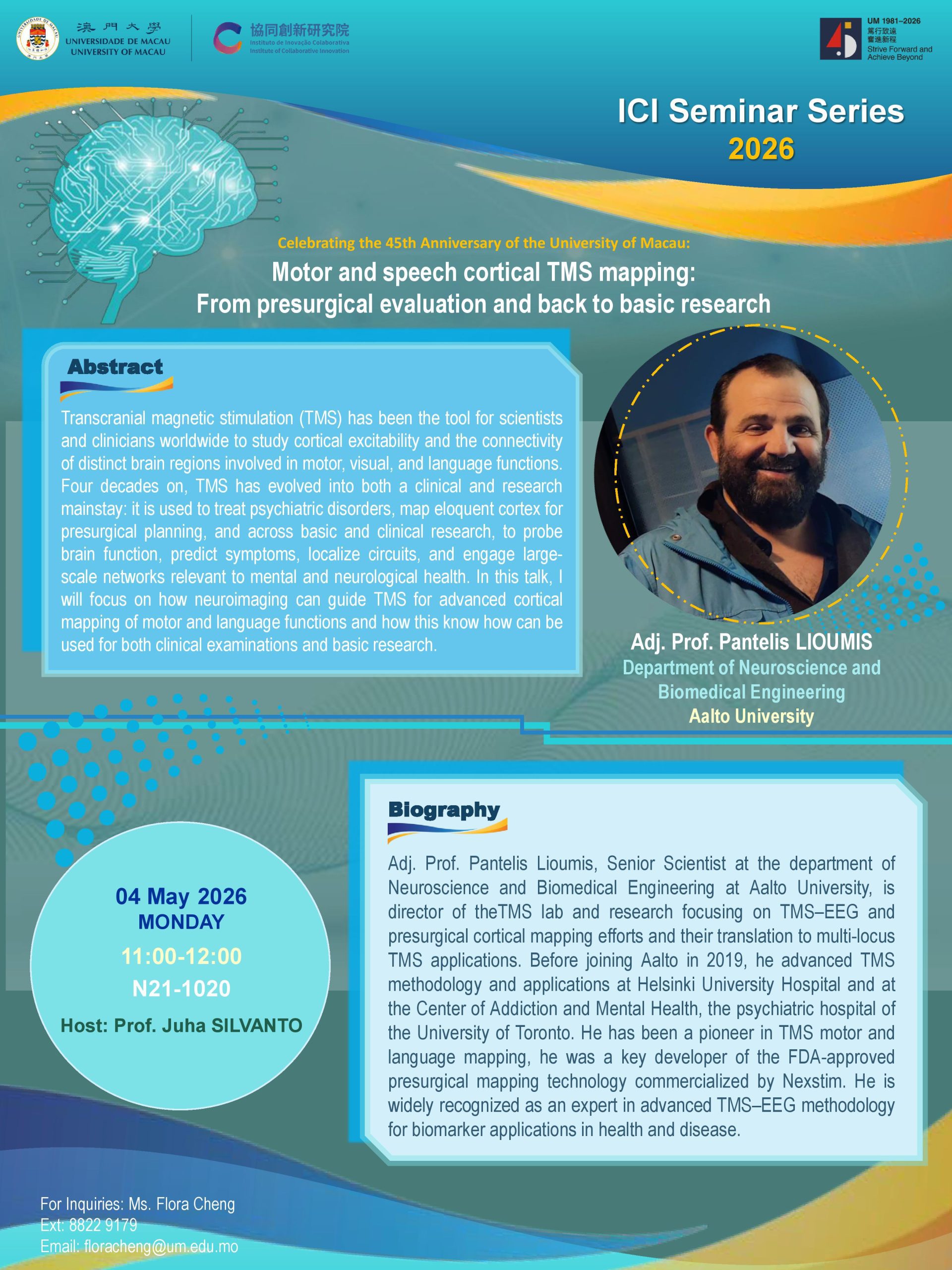 慶祝澳門大學45周年校慶 ── 2026年協同創新研究院講座系列: Pantelis LIOUMIS教授,阿爾托大學